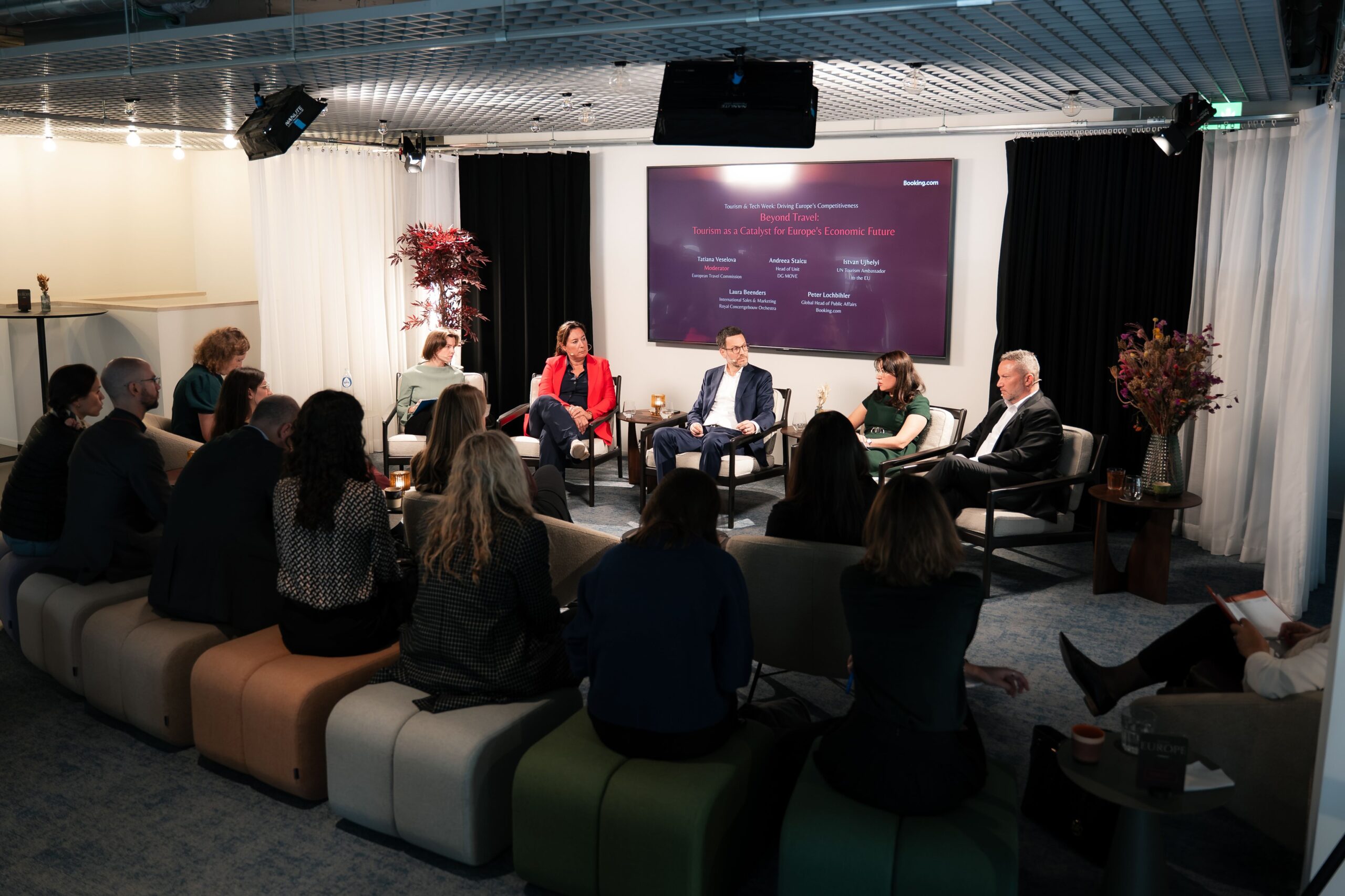 In September 2025 Bump partnered with Booking.com to host Tourism & Tech Week: Driving Europe’s Competitiveness at our “Hotel Europe” policy experience space in Brussels. Across five days, we convened EU policymakers, industry leaders and experts for a series of roundtables, panels and networking events exploring how tourism and technology can strengthen Europe’s innovation, sustainability and skills agenda. From short-term rental policy and the future EU tourism strategy to SME digitalisation, AI adoption and workforce shortages—including the launch of Booking.com’s accommodation-sector Skills Gap Survey.